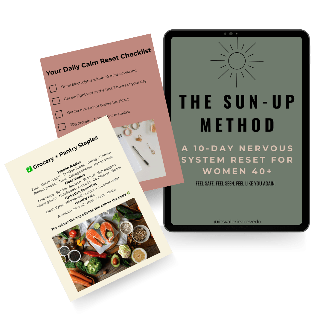The SUN-UP Method offers simple, supportive tools to help your nervous system feel safe again—through hydration, morning sunlight, nourishing protein, gentle movement, and calm evening rhythms.